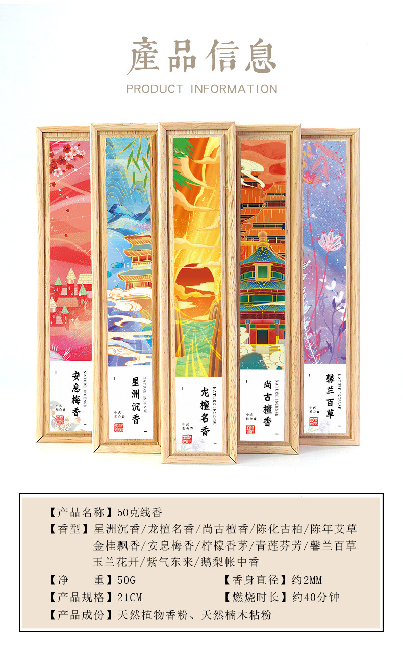 雀麦 中式天然线香鹅梨帐中香沉香檀香古柏艾草柏香50克橡木盒装